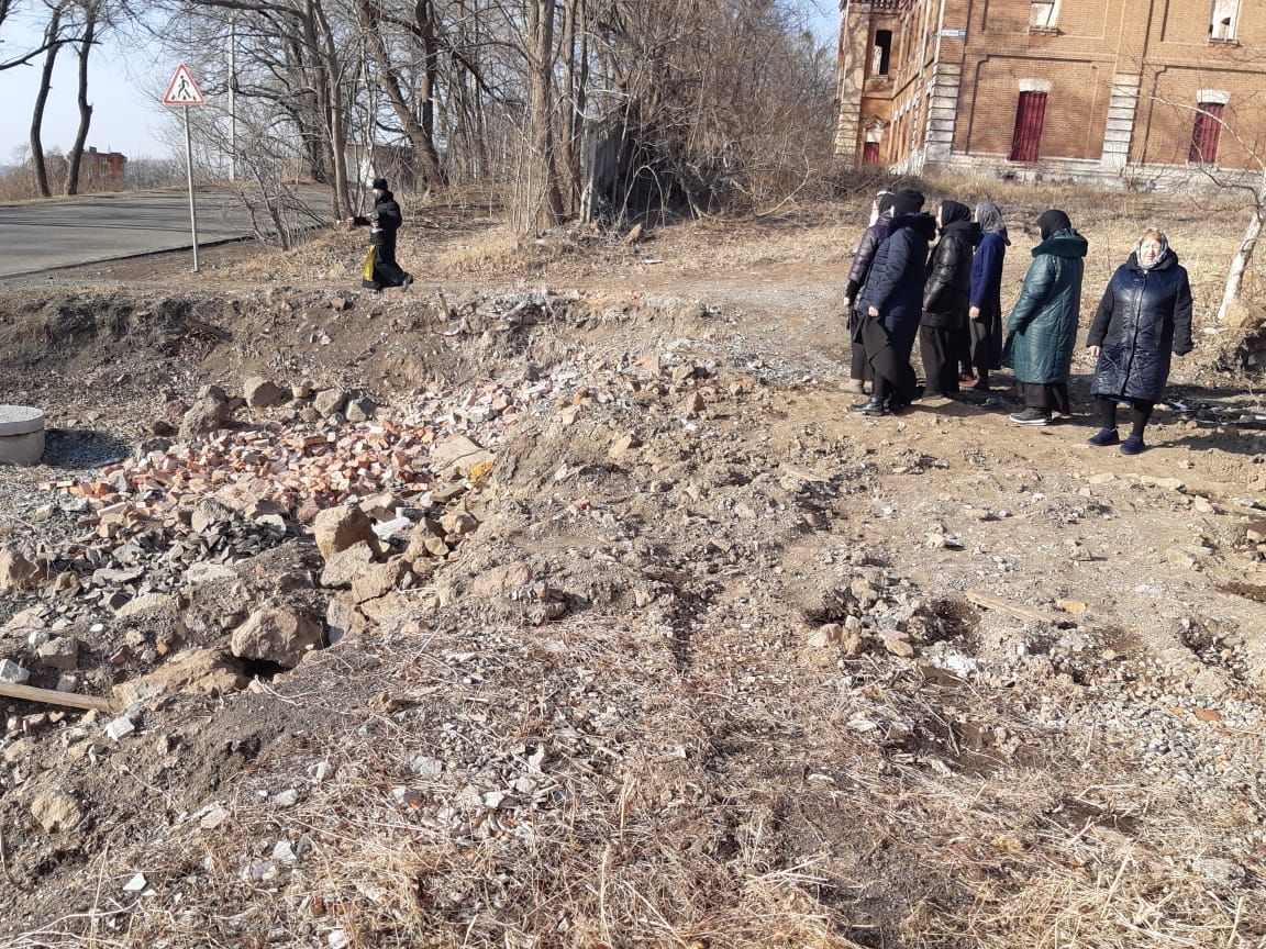 В завершение молебна была вознесена коленопреклоненная молитва ко Господу с усердным прошением Божией помощи в этом важном и трудном деле. После молебна иеромонах Иннокентий окропил строительную площадку.