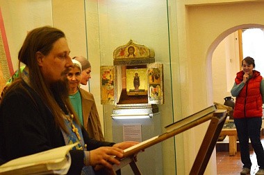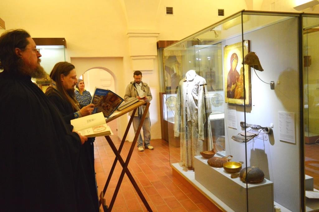 В экспозиции Трапезной палаты, где проводился молебен, находится еще одна святыня верующих – образ преподобного Кирилла Белозерского, написанный при жизни святого преподобным Дионисием Глушицким и привезенный из Третьяковской галереи.