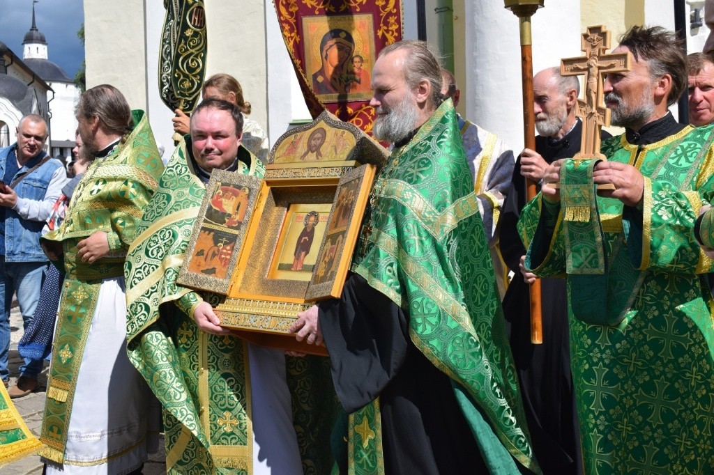 После богослужения верующие совершили крестный ход вокруг Успенского собора Кирилло-Белозерского монастыря, во время остановок читалось Евангелие и совершалось крапление святой водой. Также духовенством было совершено славление преподобному Кириллу.