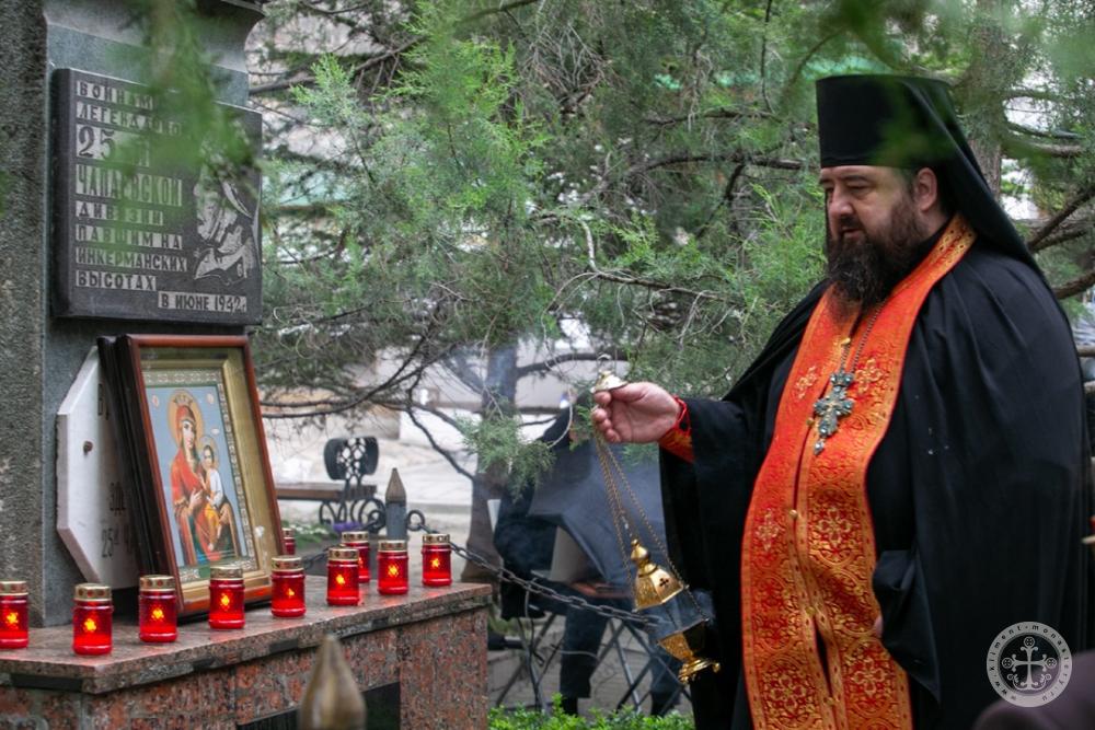 Исполняющий обязанности игумена обители, благочинный по делам монастырей епархии иеромонах Кронид отслужил заупокойную литию о павших воинах. Участники митинга почтили память героев минутой молчания и возложили цветы. Севастопольская молодежь зачитала стихи о войне.