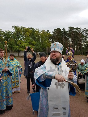 Затем архипастыри возглавили торжественный крестный ход вокруг монастырских стен со списком Коневской иконы Божией Матери, некогда находившимся в иконостасе церкви Коневского скита и возвращенным в 2015 году на остров. Во время крестного хода епископ Игнатий в сослужении епископа Мелетия совершил панихиду на старинном братском кладбище монастыря. Крестный ход вокруг монастырских стен в день престольного праздника также стал событием в новейшей истории обители: долгое время по причине реставрационных работ крестные ходы вокруг стен не проходили.
