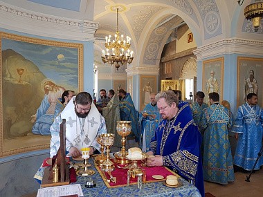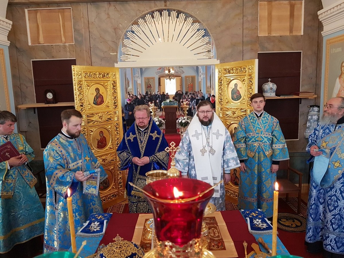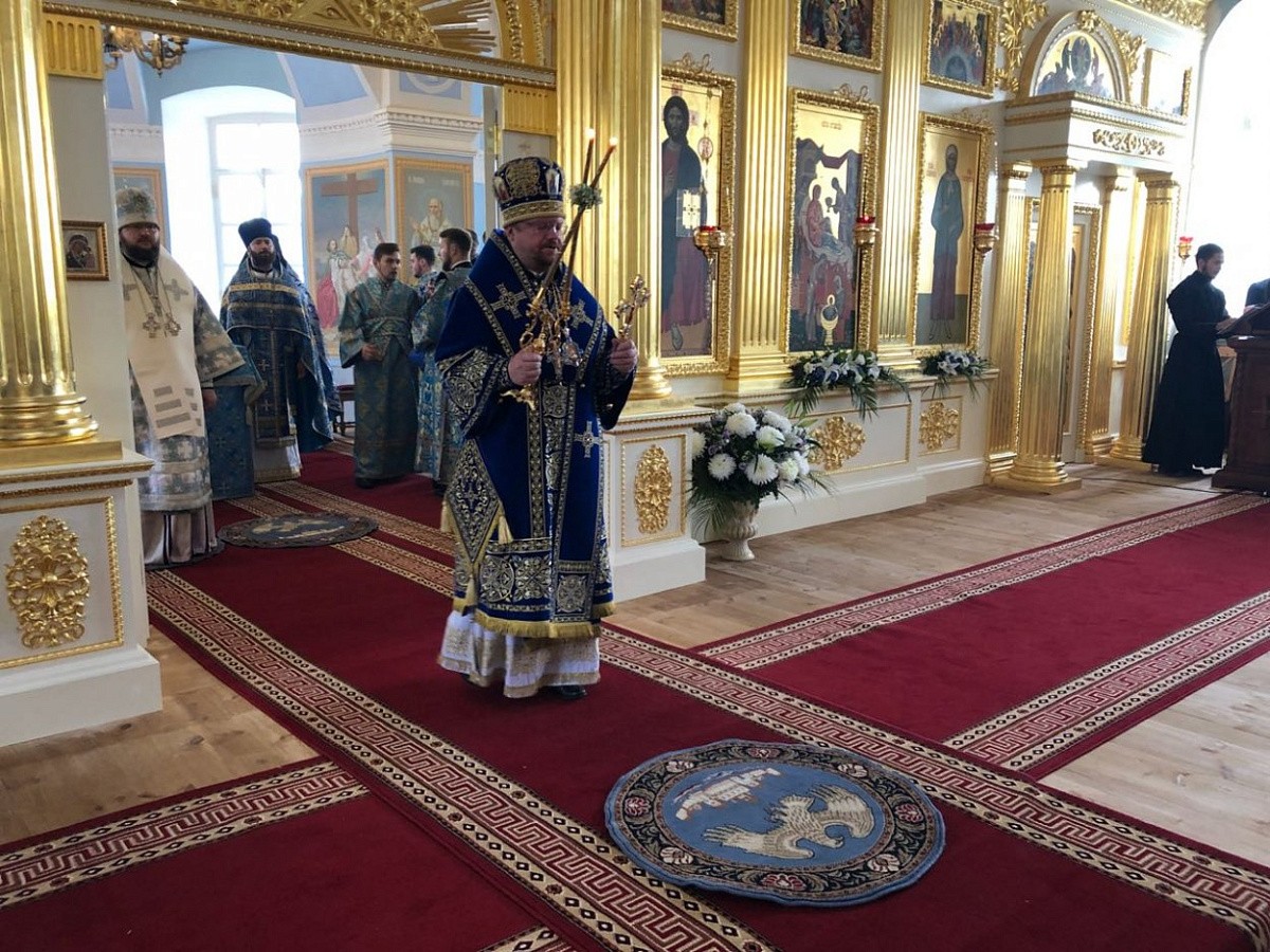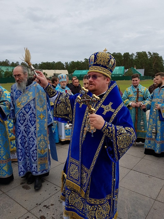 Божественную литургию в соборе Рождества Пресвятой Богородицы возглавил священноархимандрит обители епископ Выборгский и Приозерский Игнатий в сослужении епископа Рославльского и Десногорского Мелетия. Данная Литургия стала первой в верхнем храме после воссоздания в нем фресковой росписи и иконостаса.