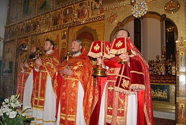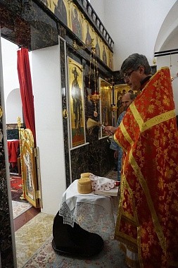 Проповедь по окончании Литургии в городе произнес протоиерей Олег Криволап, на подворье в храме Благовещения – иерей Николай Сорокин.