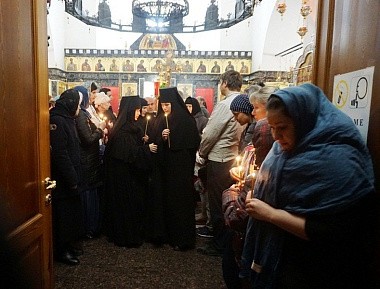 Пасхальные песнопения византийским распевом исполнили насельницы монастыря.