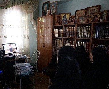 В этот же день насельницы обители приняли участие в телемосте с Александро-Невским Ново-Тихвинским женским монастырем г. Екатеринбурга. Беседу провел духовник екатеринбургской обители схиархимандрит Авраам (Рейдман), ответивший на вопросы сестер монастыря «Всецарица».
