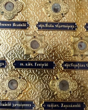 По окончании Литургии был исполнен тропарь и кондак святому Георгию Победоносцу. Иеромонах Тихон прочел молитву у ковчега с честными мощами.