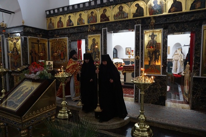Монашествующие за ночной Литургией причастились Святых Христовых Таин. Проповедь по окончании Литургии в обители в городе произнес протоиерей Олег Криволап, на подворье в храме Благовещения – иеромонах Тихон (Орлов).