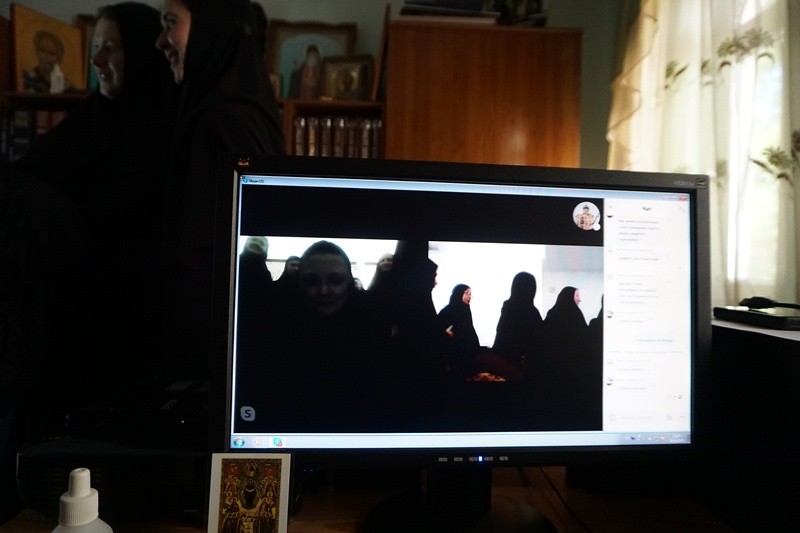 После трапезы игумения Неонилла и насельницы обители приняли участие в телемосте с Александро-Невским Ново-Тихвинским женским монастырем Екатеринбурга. В программе «Skype» духовник Ново-Тихвинской обители схиархимандрит Авраам (Рейдман) проводил духовную беседу.
