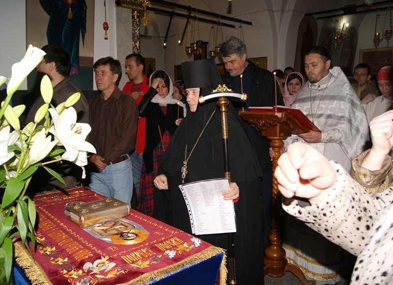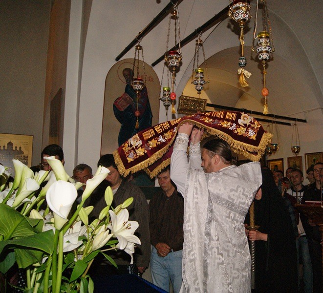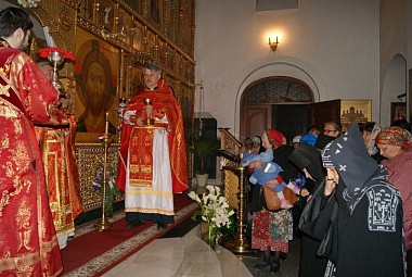Почти все молящиеся за ночной Литургией причастились Святых Христовых Тайн. Проповедь по запричастном стихе в городской обители произнес протоиерей Олег Криволап, на подворье в храме Благовещения – иеромонах Тихон (Орлов).