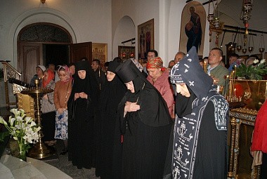 Пасхальные песнопения византийским распевом исполнили насельницы обители; особенно красиво прозвучали песнопения на греческом языке. Пономарили сестры-алтарницы.