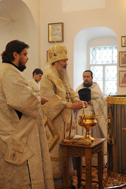 Богослужебные песнопения исполнил архиерейский хор (регент Людмила Телегина).