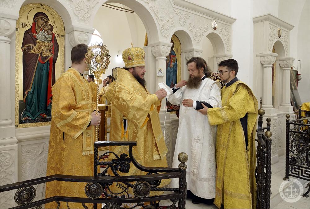 Преосвященнейший владыка Каллиник возглавил служение соборной архиерейской Литургии в сослужении сонма духовенства епархии и гостей. По окончании богослужения владыку Каллиника от лица Правящего архиерея Симферопольской и Крымской епархии митрополита Лазаря поздравил епископ Ялтинский Нестор, зачитав поздравительный адрес и преподнеся в дар панагию. Множество представителей духовенства, братии монастырей и мирян также тепло поздравили владыку.