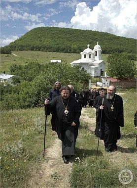 По целовании креста духовенство и богомольцы направились к обелиску героям, положившим души за Отечество и други своя – погибшим на святой земле греческого селения Лаки во время Великой Отечественной войны: все 47 селян были уничтожены врагом за то, что не выдали месторасположение советских партизан. В день памяти и скорби были вознесены молитвы о упокоении душ всех погибших и возложены цветы к обелиску.
