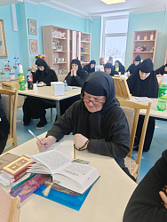 После сдачи зачета сестры-заочницы прослушали установочные лекции по Священному Писанию Нового Завета, просмотрели несколько видеосюжетов из Нового Завета.