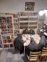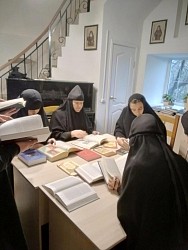 Слушательницы курсов этого потока – сестры из Успенского Феклиной пустыни, женского монастыря в честь святых жен-мироносиц Козельской епархии и послушницы из Свято-Никольского Черноостровского женского монастыря.