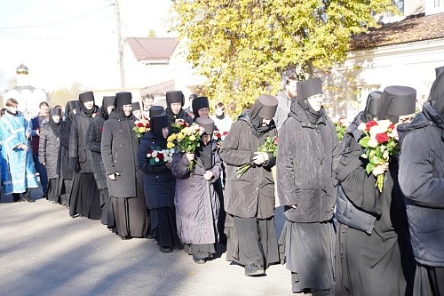 В 9 утра перед колокольней над внутренними вратами Черноостровской обители настоятельница Свято-Никольского Черноостровского женского монастыря игумения Николая (Ильина) вместе с сестрами, прихожанами и гостями обители встретили митрополита Калужского и Боровского Климента, возглавившего Божественную литургию. За богослужением молились настоятельница игумения Николая с сестрами, игумения Анастасия (Мордмиллович), настоятельница Спасо-Преображенского женского монастыря на Угре с сестрами, игумения Нина (Схулухия), настоятельница Богородице-Рождественского женского монастыря г. Тюмени, игумения Параскева (Ляхова), настоятельница женского монастыря в честь Калужской иконы Божией Матери с сестрами и воспитанниками воскресной школы при монастыре, игумения Михаила (Осипова), настоятельница Свято-Успенского Гремячего женского монастыря с сестрами, игумения Ангелина (Петрова), настоятельница Казанского девичьего монастыря г. Калуги, настоятельницы женских скитов и подворий Калужской митрополии, представители казачества, кадеты, прихожане и гости обители.