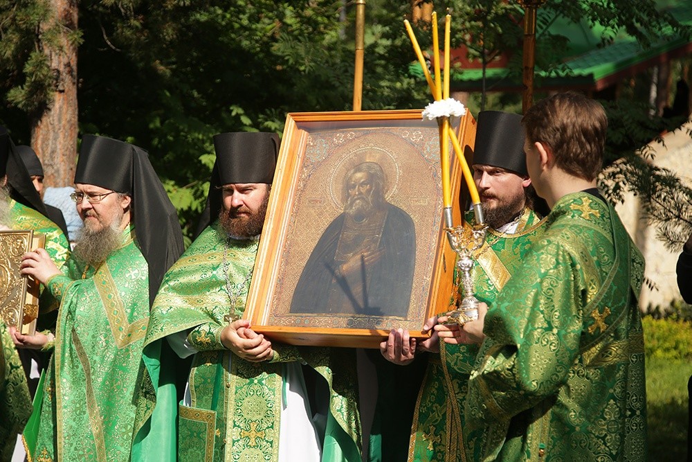 По окончании праздничного богослужения владыка Кирилл преподал молящимся архипастырское благословение, поздравив всех с днем обретения святых мощей Серафима Саровского.