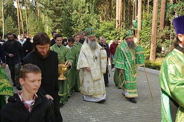 Архипастырям сослужили: секретарь епархиального управления Екатеринбургской епархии иеромонах Кирилл (Корытко), исполняющий обязанности наместника мужского монастыря во имя святых Царственных страстотерпцев в урочище Ганина Яма иеромонах Мелитон (Зыбин) с братией обители в священном сане и духовенство Екатеринбургской епархии.