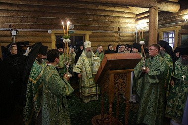 Его Высокопреосвященству сослужили: наместник Верхотурского Свято-Николаевского монастыря игумен Иероним (Миронов), наместник Крестовоздвиженского мужского монастыря Екатеринбурга игумен Флавиан (Матвеев), ректор Екатеринбургской духовной семинарии иеромонах Корнилий (Зайцев), исполняющий обязанности наместника мужского монастыря во имя святых царственных страстотерпцев в урочище Ганина Яма иеромонах Мелитон (Зыбин), секретарь епархиального управления Екатеринбургской епархии иеромонах Кирилл (Корытко), братия обители в священном сане, а также монашествующие священнослужители, несущие послушания на приходах Екатеринбургской епархии.