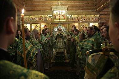 Накануне Его Высокопреосвященство отслужил всенощное бдение в монастырском храме во имя преподобного Серафима Саровского.