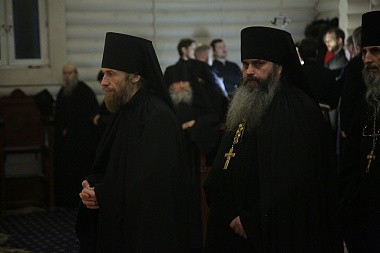 Архипастырям за Литургией сослужили секретарь епархиального управления Екатеринбургской епархии иеромонах Кирилл (Корытко), наместник монастыря игумен Леонтий (Козлов) с братией обители в священном сане, наместник Свято-Николаевского Верхотурского мужского монастыря игумен Иероним (Миронов) и духовенство Екатеринбургской епархии.