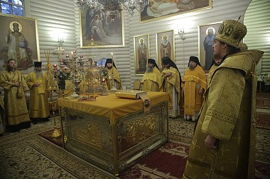 За богослужением молились настоятельница Александро-Невского Ново-Тихвинского женского монастыря игумения Домника (Коробейникова), настоятельница женского Елизаветинского монастыря г. Алапаевска игумения Смарагда (Зыкова), настоятельница Сарсинского Боголюбского женского монастыря игумения Питирима (Лисицына), игумения Верхотурского женского монастыря Покрова Божией Матери матушка Магдалина (Сулеменова).