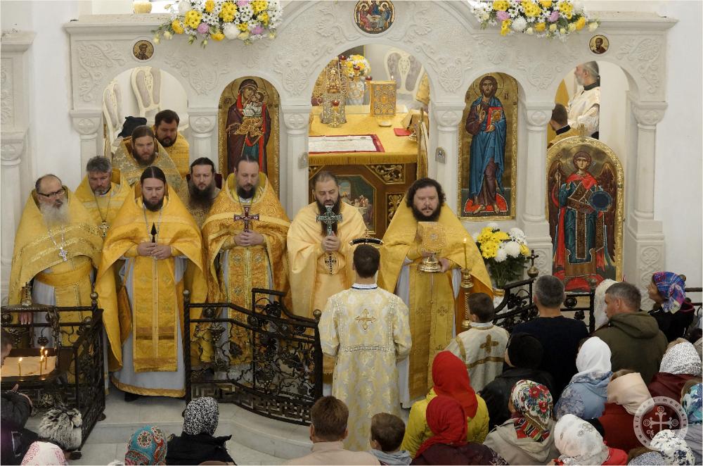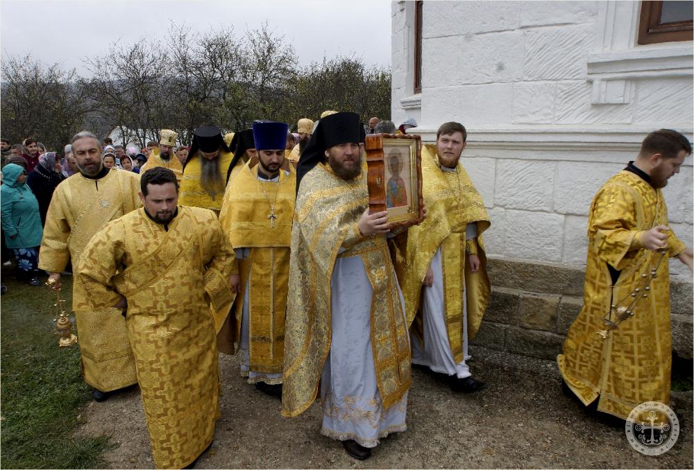 Божественную литургию в обители в этот день возглавил наместник монастыря, благочинный монастырей Крыма архимандрит Каллиник (Чернышев) в сослужении отцов наместников монастырей, благочинных, священства Симферопольской и Крымской епархии и священноиноков Свято-Климентовского Инкерманского пещерного мужского монастыря г. Севастополя.