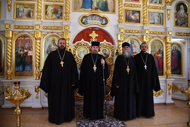 Божественную литургию возглавил настоятель монастыря игумен Кирилл (Никитин) в сослужении насельников обители – иеромонахов Христофора (Савельева) и Павла (Дударова).