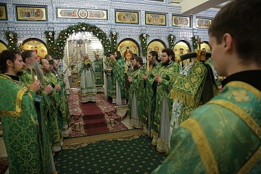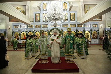 Его Высокопреосвщенству сослужили архипастыри епископ Серовский и Краснотурьинский Алексий и епископ Алапаевский и Ирбитский Леонид, а также наместник Царской обители игумен Леонтий (Козлов), секретарь епархиального управления Екатеринбургской епархии иеромонах Кирилл (Корытко), благочинный обители иеромонах Иов (Чумаченков), братия монастыря в священном сане и клирики Екатеринбургской митрополии.