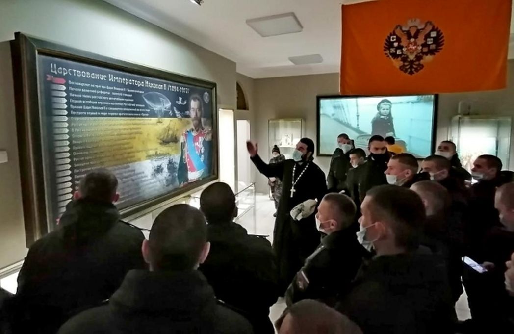 Перед посещением храмов обители и шахты, в которую в ночь с 16 на 17 июля 1918 года были сброшены тела Царственных страстотерпцев, отец Димитрий показал военнослужащим экспонаты и наглядные пособия в экспозиционно-выставочном центре монастыря. Военнослужащие с интересом слушали рассказ о династии Романовых, о достижениях Российской империи, о Первой Мировой войне, об офицерской и солдатской доблести русских воинов.