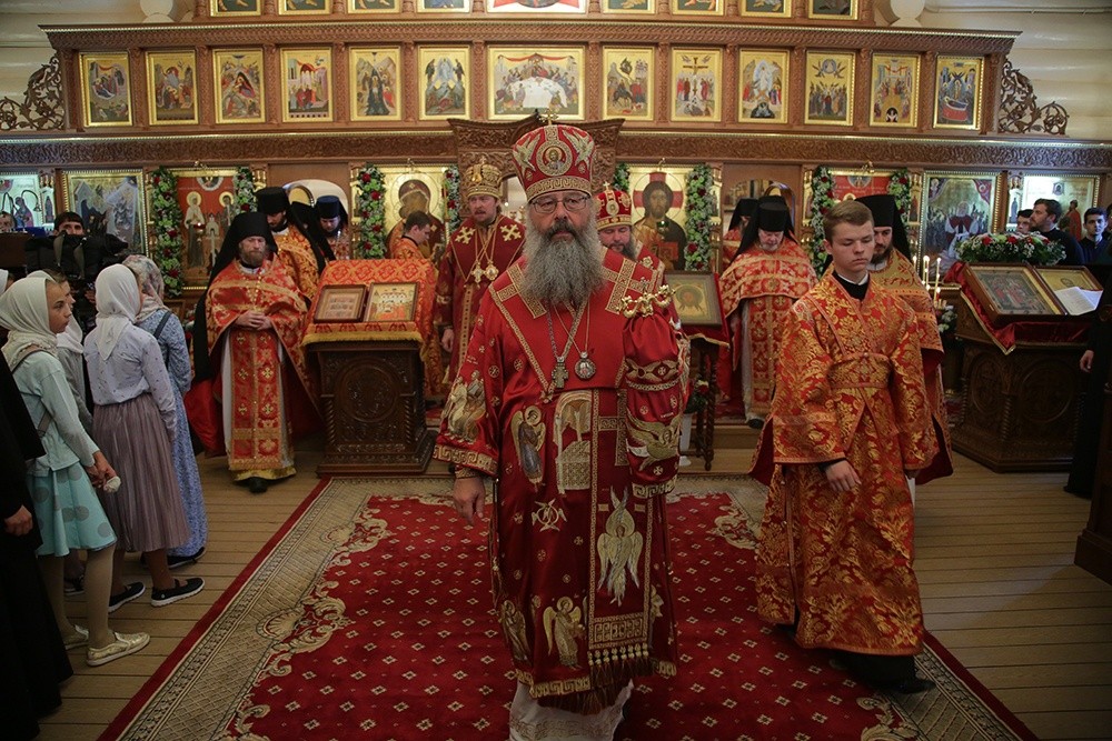 15 июля 2019 года, в день Положения честной ризы Пресвятой Богородицы во Влахерне, митрополит Екатеринбургский и Верхотурский Кирилл, епископ Нижнетагильский и Невьянский Евгений и епископ Серовский и Краснотурьинский Алексий совершили Божественную литургию в Царском храме мужского монастыря царственных страстотерпцев в урочище Ганина Яма.