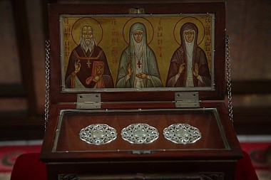 В монастырском храме пребывают привезенные из Иерусалима частицы нетленных мощей святых преподобномучениц Великой княгини Елисаветы Феодоровны и инокини Варвары. В 2018 году обитель посетил Святейший Патриарх Московский и всея Руси Кирилл. Предстоятель Русской Церкви 15 июля 2018 года совершил чин великого освящения храма в честь Феодоровской иконы Божией Матери на территории монастыря и возглавил Божественную литургию в новоосвященном храме. Возведение храма осуществлялось с 2008 года на протяжении 10 лет и завершается в год 100-летия мученического подвига преподобномучениц Елисаветы и Варвары.