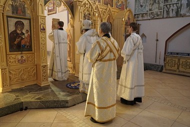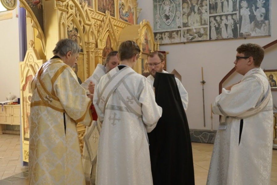 По окончании богослужения на территории монастыря архиепископ Серафим совершил освящение закладного камня в основание храма в честь преподобных Антония и Феодосия Печерских.