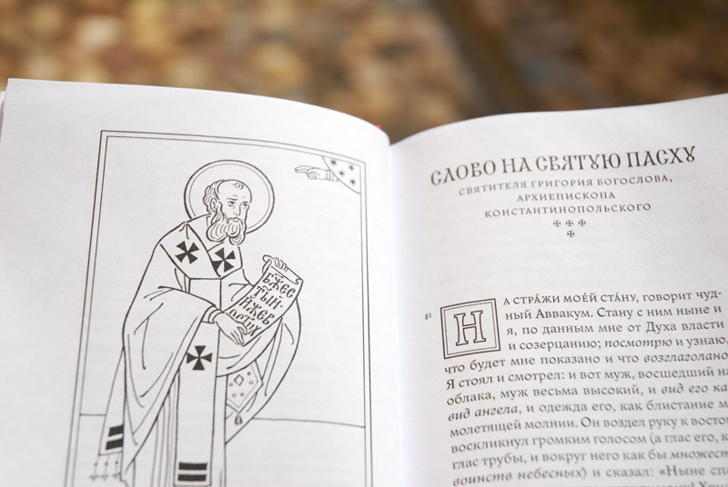 Разговор о книге затронул как ее внешнее оформление, так и внутреннее содержание. Дизайн книги сделан под вдохновением работ венецианского печатника Альда Мануцци, а выбор шрифта отчасти обусловлен почтительным отношением к Швайпольту Фиолю и Франциску Скорине. По слову отца Иоанна Нефёдова, «эта книга должна стать не настольной, а карманной», а ее небольшой формат и удобство в использовании весьма способствуют этому.