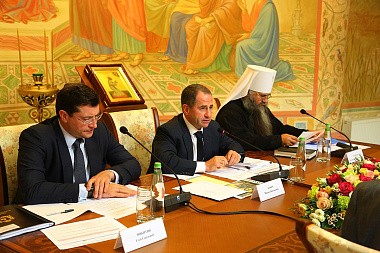 В заседании участвовали заместитель министра финансов России Андрей Иванов, глава Нижегородской области Глеб Никитин, митрополит Нижегородский и Арзамасский Георгий, председатель комитета Совета Федерации по конституционному законодательству и государственному строительству Андрей Клишас, генеральный директор – председатель правления ОАО «РЖД» Олег Белозеров, директор по развитию ПСР Госкорпорации «Росатом» Сергей Обозов.