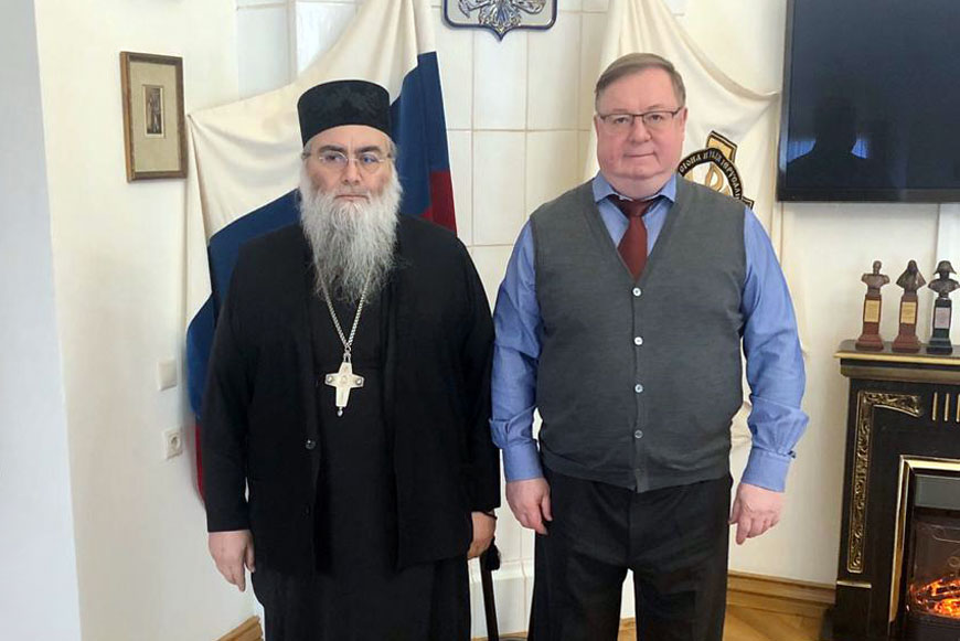 23 марта 2020 года в Центре Императорского православного палестинского общества в Москве состоялась встреча председателя ИППО Сергея Степашина с настоятелем Михаило-Архангельского мужского монастыря игуменом Афанасием (Селичевым).