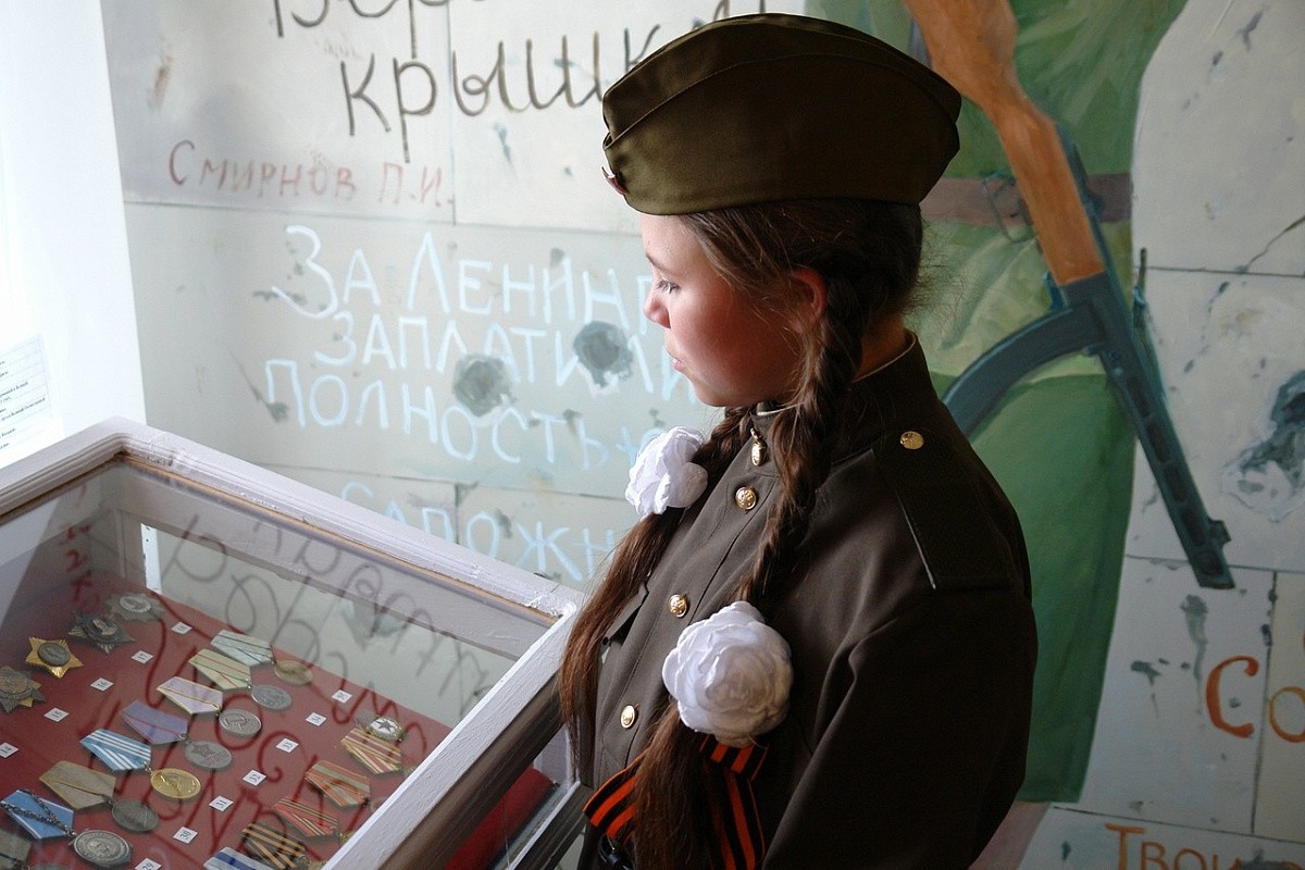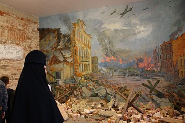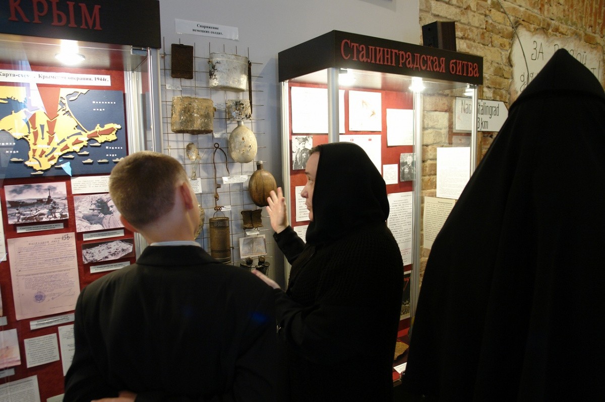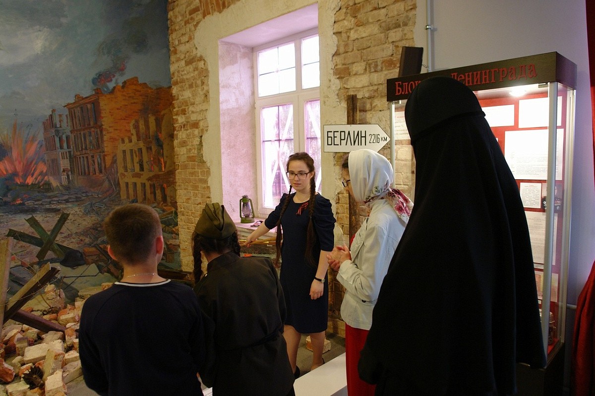 Посетители приходили семьями с маленькими детьми, чтобы приобщиться к истории войны, вспомнить это славное и трудное время. Среди посетителей музея присутствовали насельницы монастыря.