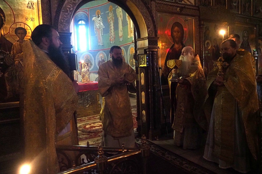 Его Высокопреосвященству сослужили настоятель Свято-Троицкого Болдина мужского монастыря архимандрит Антоний (Мезенцов) и братия обители в священном сане.