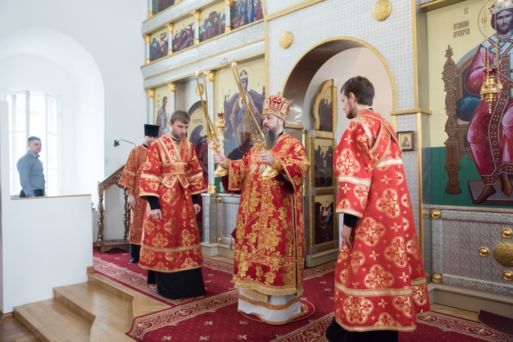 Его Высокопреосвященству сослужили наместник Спасо-Преображенского мужского монастыря игумен Сергий (Зайчиков) и братия обители в священном сане.
