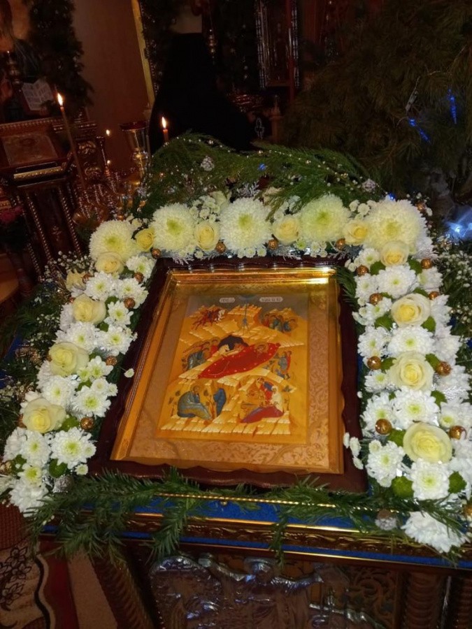 По окончании Литургии Преосвященнейший владыка поздравил игумению Веру с днем рождения и обратился к молящимся в храме с проповедью.