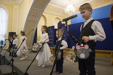 По окончании Литургии ее участникам была предложена праздничная трапеза, во время которой детский хор исполнял старинные рождественские колядки и канты.