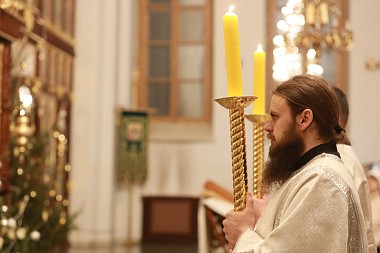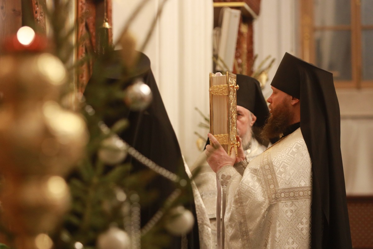 По окончании Литургии было зачитано Рождественское послание Святейшего Патриарха Московского и всея Руси Кирилла архипастырям, пастырям, диаконам, монашествующим и всем верным чадам Русской Православной Церкви.