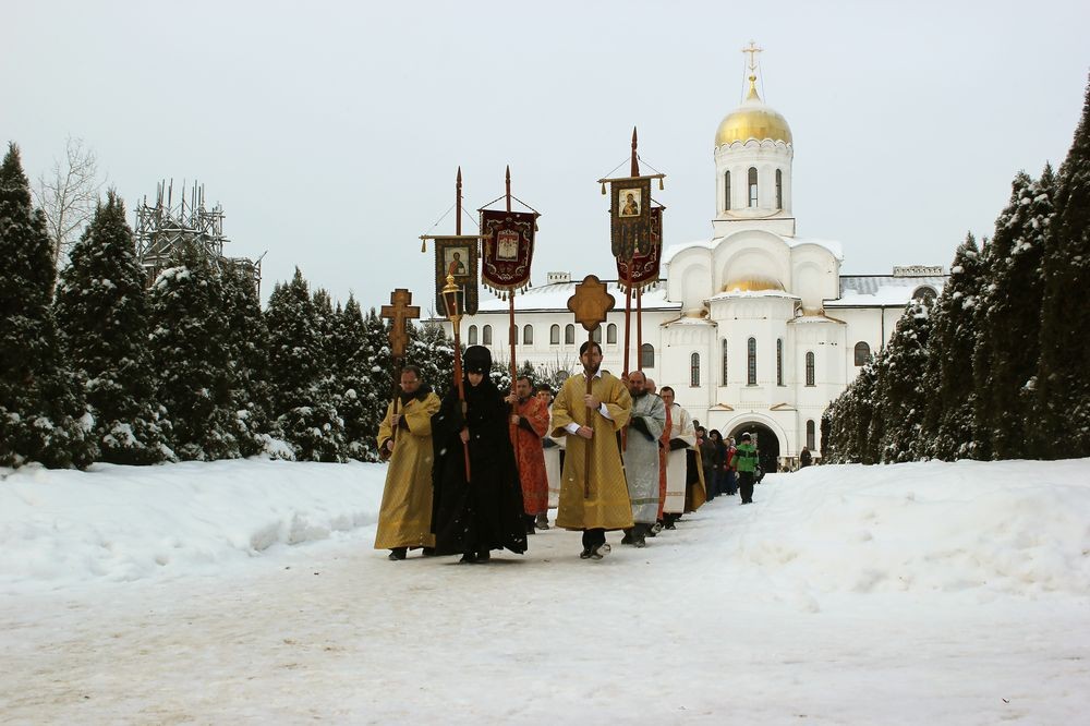 По традиции в этот день служились две Божественных литургии: ночная в надвратном храме святителя Николая и утренняя в главном храме монастыря в честь Успения Пресвятой Богородицы.