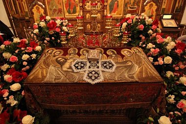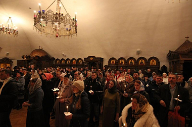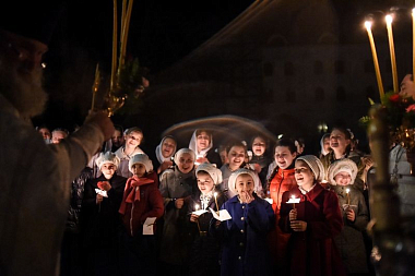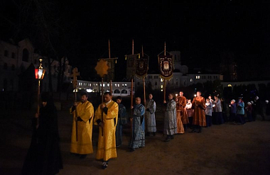 Перед Святой Плащаницей была совершена полунощница с чтением канона. В полночь пением стихиры «Воскресение Твое, Христе Спасе…» начался пасхальный крестный ход вокруг Успенского храма монастыря под ликующий звон колоколов. Утреня и Божественная литургия, совершенные при открытых Царских вратах, пение тропаря праздника на разных языках мира, каждение храма с радостным восклицанием «Христос Воскресе!» – всё было проникнуто светлым, искренним торжеством.