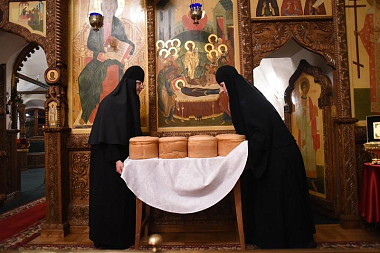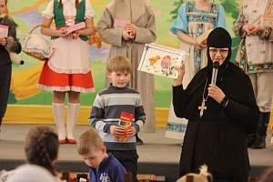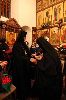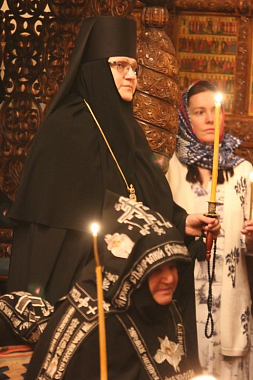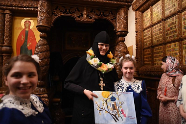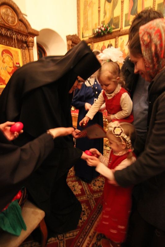 По окончании ночного пасхального богослужения настоятельница Николо-Сольбинского женского монастыря игумения Еротиида (Гажу) поздравила молящихся с праздником, подарив каждому монастырскую пасхальную открытку и красное яйцо.