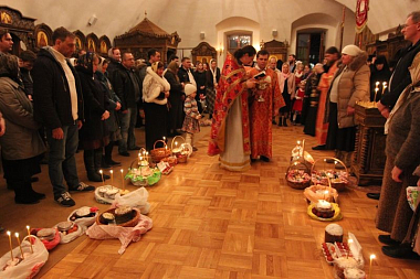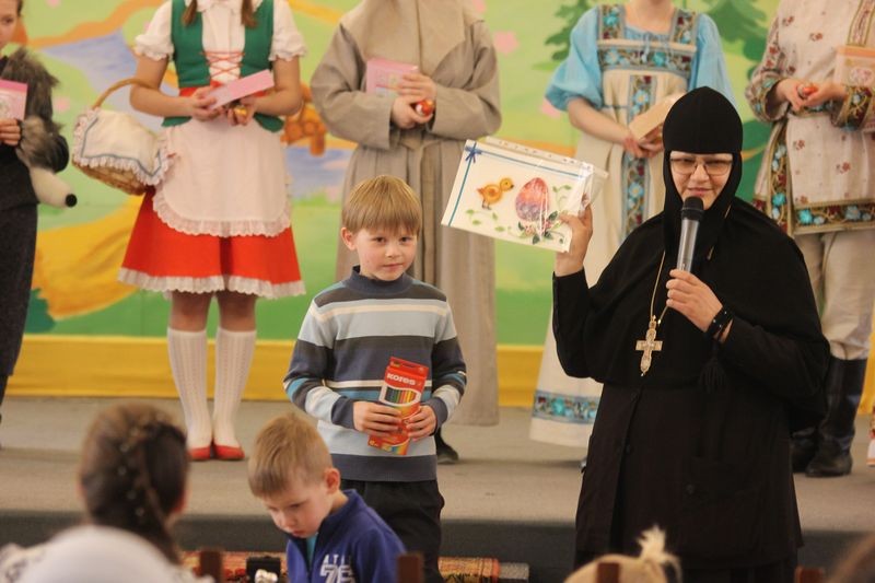 Затем участников богослужения ожидало пасхальное разговление. Во время трапезы детский хор «Сольба» представил гостям праздничный концерт.