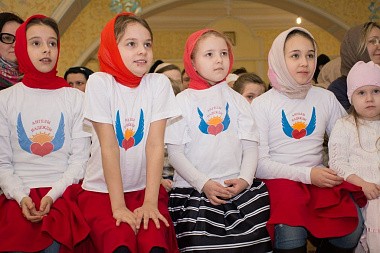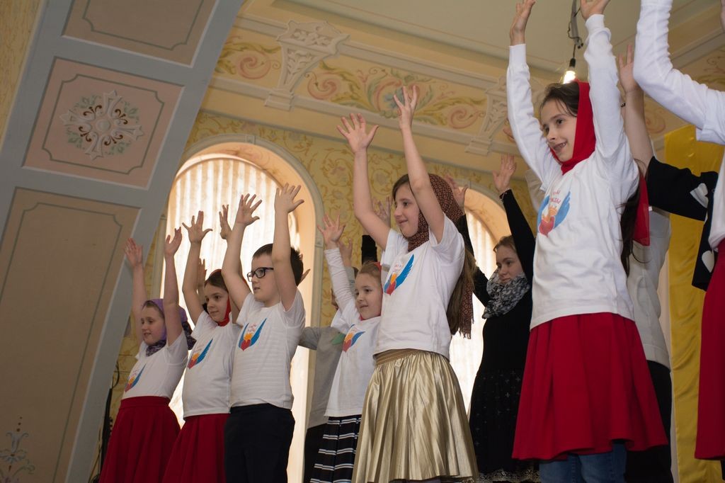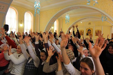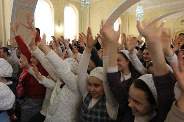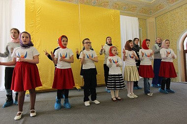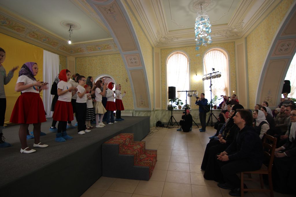 Юные артисты выступили перед сестрами, воспитанницами «Доброй школы на Сольбе» и гостями монастыря с небольшим концертом. Все слышали звукозапись песен, а дети синхронно исполняли их на языке жестов и танцевальных движений.