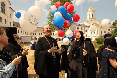 – Сегодня для всех нас, особенно для наших выпускниц, большой праздник. Они выходят из стен школы, где столько лет не просто учились, но и жили. Наша школа отличается тем, что девочки здесь живут, это их дом на протяжении многих лет. В этом году у нас десятый выпуск из общеобразовательной школы «Добрая школа на Сольбе» и первый выпуск колледжа. Мы с сестрами от всей души поздравляем всех выпускниц, наших родных девочек, с завершением учебы. Для нас это торжественный день, одновременно и грустный, и радостный. Хочу пожелать им быть смелыми, добрыми, отзывчивыми, такими, какими вы были у нас. Умножайте свои таланты. Вы очень талантливые, очень любимые нами, и мы всегда будем молиться за вас, как молимся за всех наших выпускниц. Божией помощи, дорогие девочки!