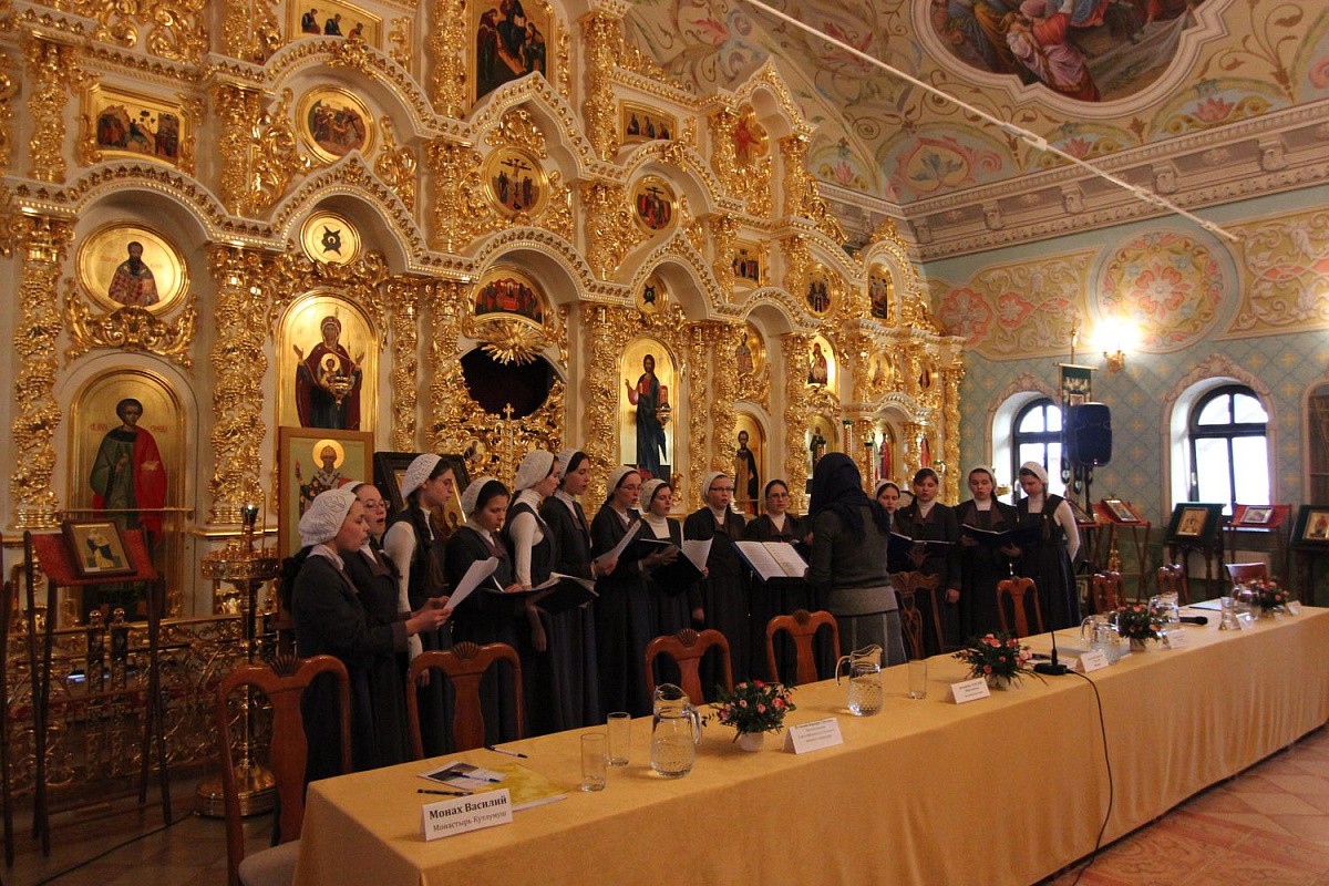 В завершение участникам конференции был предложен небольшой акапельный концерт детского хора «Сольба» воспитанниц Николо-Сольбинского монастыря. Девочки исполнили для гостей песнопения великопостного содержания.