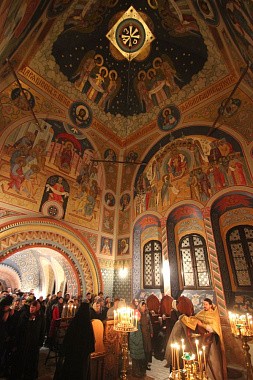 Кроме того, в обители хранятся великие святыни: башмачок святителя Спиридона и частица его святых мощей, к которым можно приложиться в любое время.